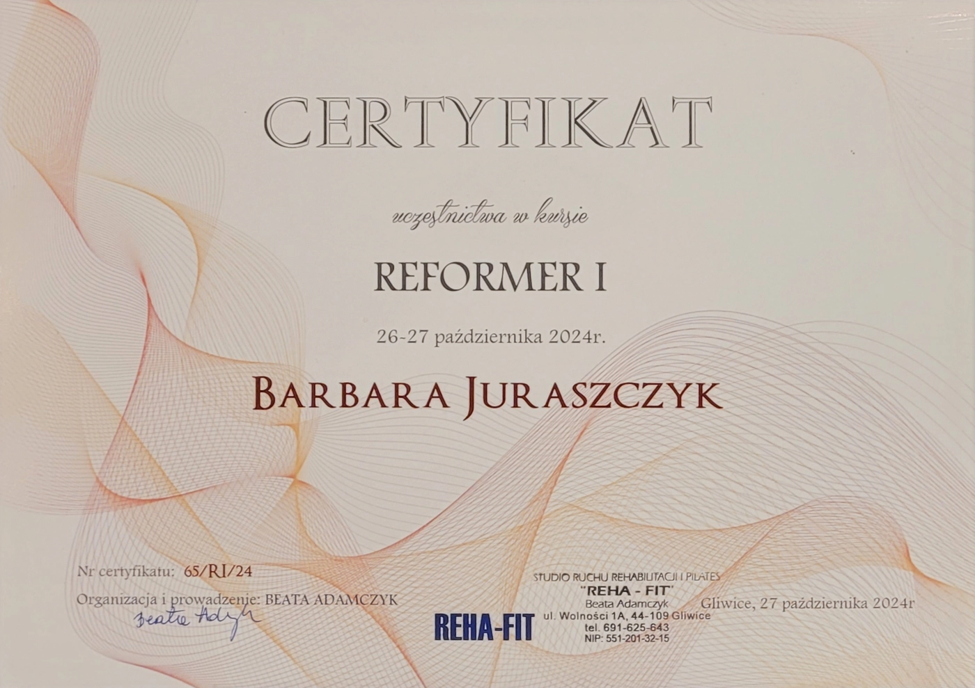 Nazywam się Basia, mam 37 lat i od ponad 10 lat pracuję w branży fitness. Posiadam uprawnienia Trenera Personalnego, Instruktora metody Pilates oraz Instruktora Fitness i od wielu lat z powodzeniem wykonuję te trzy zawody, co daje mi naprawdę szorki wachlarz umiejętności. Moja wiedza oraz zdobyte przez lata doświadczenie pozwalają mi pracować z podopiecznymi różnorodnymi metodami, które zawsze dopasowuję do ich potrzeb i możliwości – inaczej pracuję z osobami, które dopiero zaczynają swoją przygodę z aktywnością fizyczną, inaczej z tymi, którzy mają już za sobą pewne doświadczenie i jeszcze inaczej z tymi, którzy borykają się z konkretnymi ograniczeniami lub dolegliwościami. Niezależnie z jakiego miejsca startujesz, przychodząc do mnie możesz spodziewać się rozsądku, spokoju i rozwagi oraz tego, że będę słuchała, co do mnie mówisz. Możesz też liczyć na moją szczerość i na to, że będziemy pracowali nad tym, co jest naprawdę realne. W trakcie naszych spotkań nauczę Cię nie tylko jak prawidłowo i efektywnie ćwiczyć, ale przede wszystkim postaram się pokazać Ci, że siłownia nie musi być stresującą przestrzenią z masą nieznanego sprzętu. Jeśli chcesz „zaprzyjaźnić się” z aktywnością fizyczną i zrobić to z głową – bardzo chętnie będę towarzyszyła Ci w tym procesie. Zachęcam Cię również do przejrzenia moich uprawnień i certyfikatów ze szkoleń, które odnajdziesz pod przyciskiem „CERTYFIKATY”. Treningi personalne prowadzę w klubie CityFit w Katowicach, a z ich cennikiem możesz zapoznać się w zakładce „TRENING PERSONALNY”. Do zobaczenia!